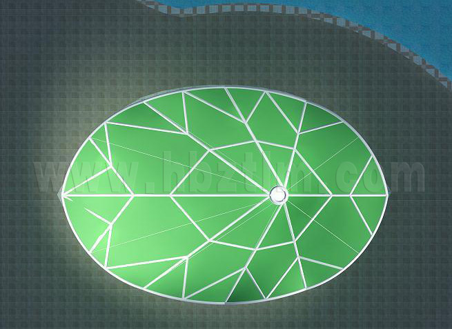 該項(xiàng)目為永久式景觀遮陽(yáng)傘,其結(jié)構(gòu)為內(nèi)撐式冒頂膜...