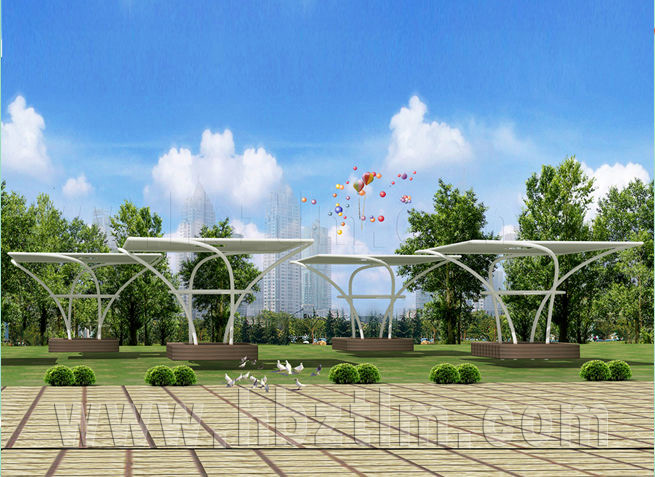 膜材采用PVDF國產(chǎn)或者進(jìn)口建筑膜材、PTFE玻璃纖維建筑膜材、ETFE透明的永久性建筑膜材;自動(dòng)放樣裁剪,高頻焊接,拉伸效果超強(qiáng),曲線成型可千變?nèi)f化;膜材質(zhì)保一般可達(dá)15-20年。