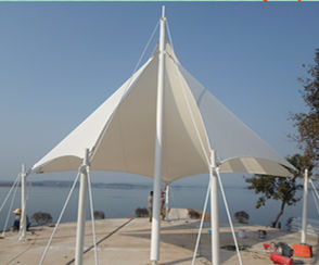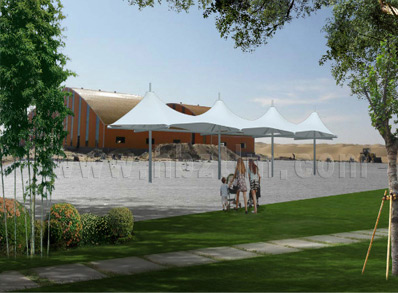 老河口市軍用機(jī)場觀景臺(tái)張拉膜結(jié)構(gòu)?,其結(jié)構(gòu)以鋼...