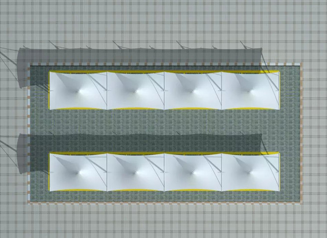 膜材采用PVDF國(guó)產(chǎn)或者進(jìn)口建筑膜材、PTFE玻璃纖維建筑膜材、ETFE透明的永久性建筑膜材;自動(dòng)放樣裁剪,高頻焊接,拉伸效果超強(qiáng),曲線成型可千變?nèi)f化;膜材質(zhì)保一般可達(dá)15-20年。
