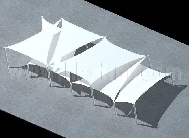 膜材采用PVDF國產(chǎn)或者進(jìn)口建筑膜材、PTFE玻璃纖維建筑膜材、ETFE透明的永久性建筑膜材;自動放樣裁剪,高頻焊接,拉伸效果超強(qiáng),曲線成型可千變?nèi)f化;膜材質(zhì)保一般可達(dá)15-20年。