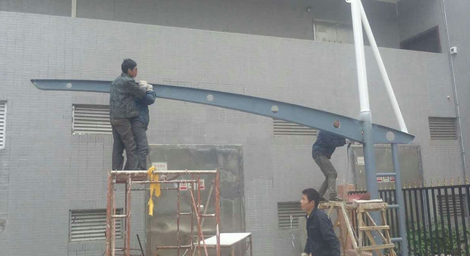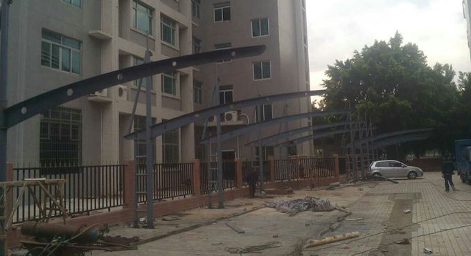 韶關(guān)質(zhì)監(jiān)局異形鋼平弧膜結(jié)構(gòu)停車棚,本項(xiàng)目采用前軟邊后硬邊張拉形式;結(jié)構(gòu)由立柱、拉桿、挑梁、橫桿構(gòu)成,其挑梁和中間橫桿一般采用異形鋼挑梁形式,美觀而不積水且抗負(fù)荷能力強(qiáng);膜材采用PVDF白色車棚專用建筑膜材,15年質(zhì)保,整體結(jié)構(gòu)美觀實(shí)用,經(jīng)濟(jì)牢固,臻至完美。