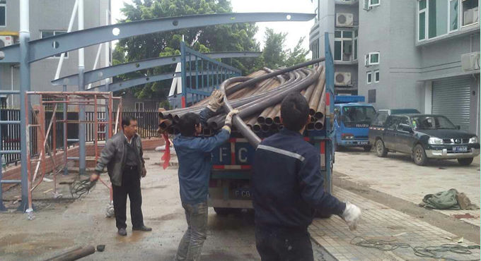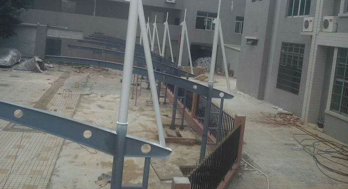 圖1 韶關(guān)質(zhì)監(jiān)局膜結(jié)構(gòu)停車棚鋼結(jié)構(gòu)現(xiàn)場(chǎng)施工圖