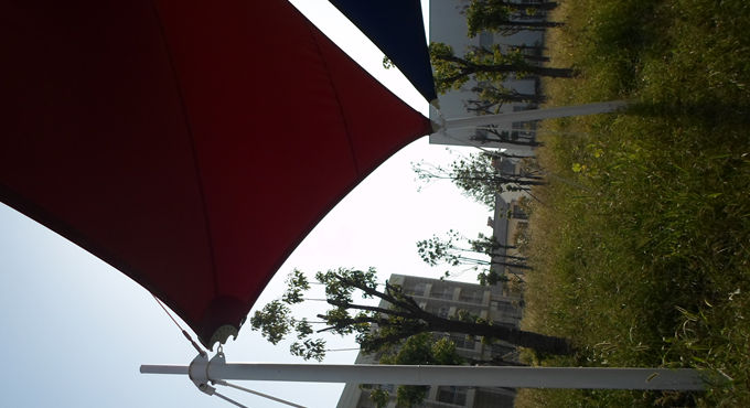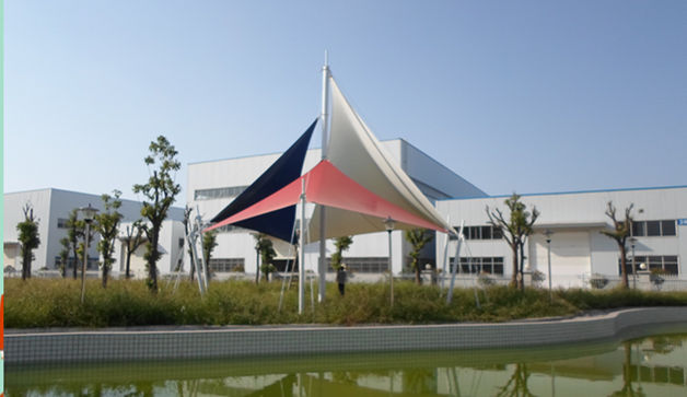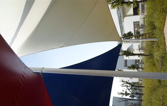 恒天嘉華景觀(guān)張拉膜結(jié)構(gòu)工程,該項(xiàng)目是典型的景觀(guān)張拉膜結(jié)構(gòu),俗稱(chēng)飛燕。膜材采用紅白藍(lán)三種顏色膜材組成,色彩鮮明;其結(jié)構(gòu)以鋼柱為受力支撐點(diǎn),全軟邊鋼索預(yù)應(yīng)力張拉成型,各環(huán)節(jié)制作安裝精度要求極高,整體結(jié)構(gòu)輕盈而優(yōu)美,既有鋼柱、鋼索牽引的力量之美,又有pvdf建筑膜材的柔性曲線(xiàn)之美,大氣、時(shí)尚、牢固實(shí)用,剛與柔完美融合,因其亮麗色彩,成為單位一道獨(dú)特的風(fēng)景。